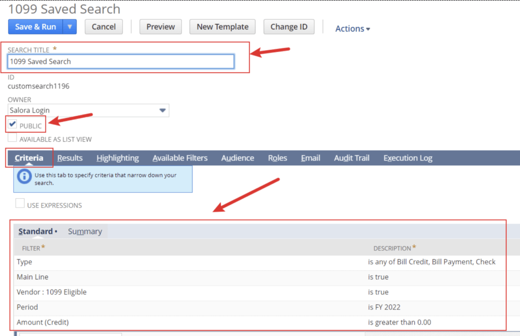 1099 Save Search Suitelet