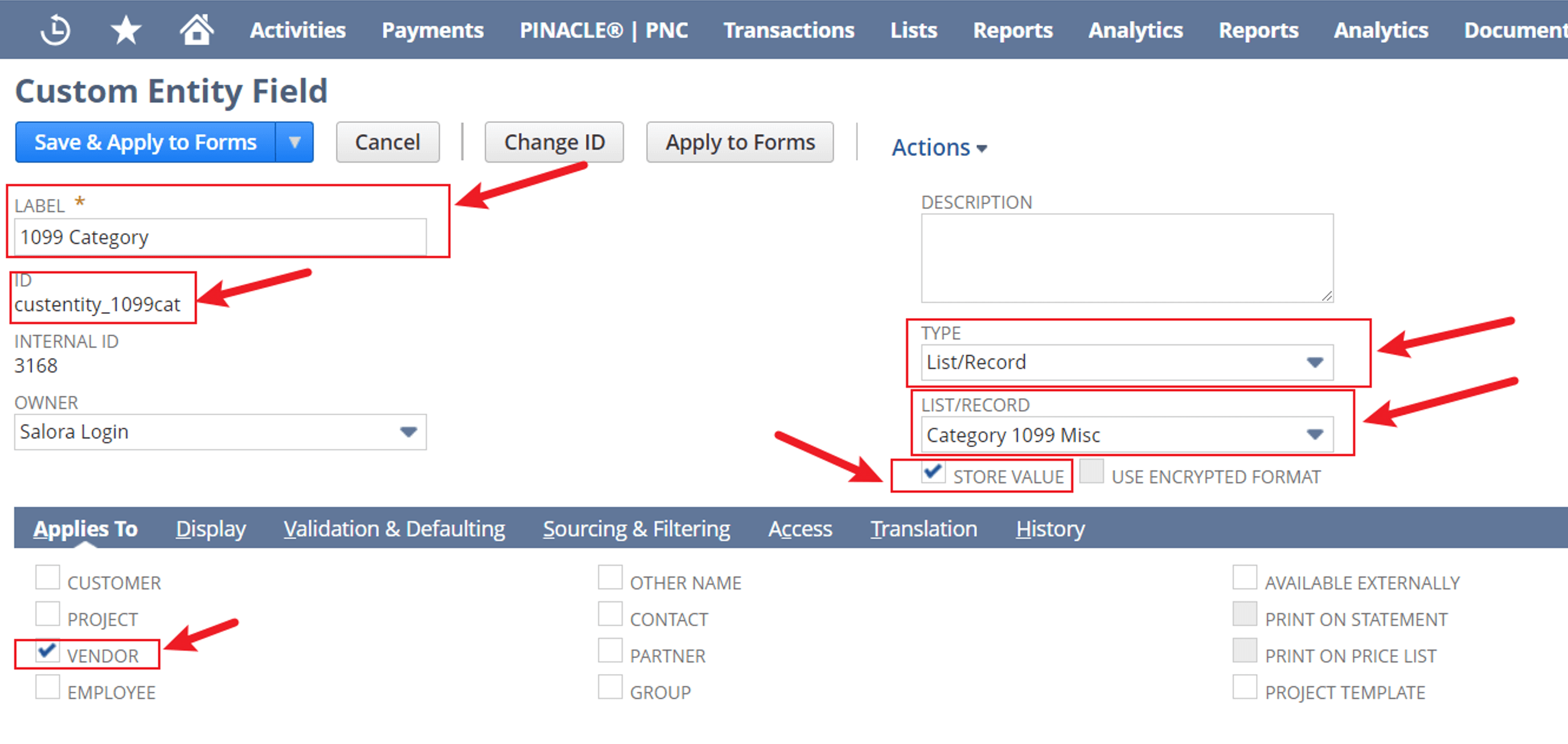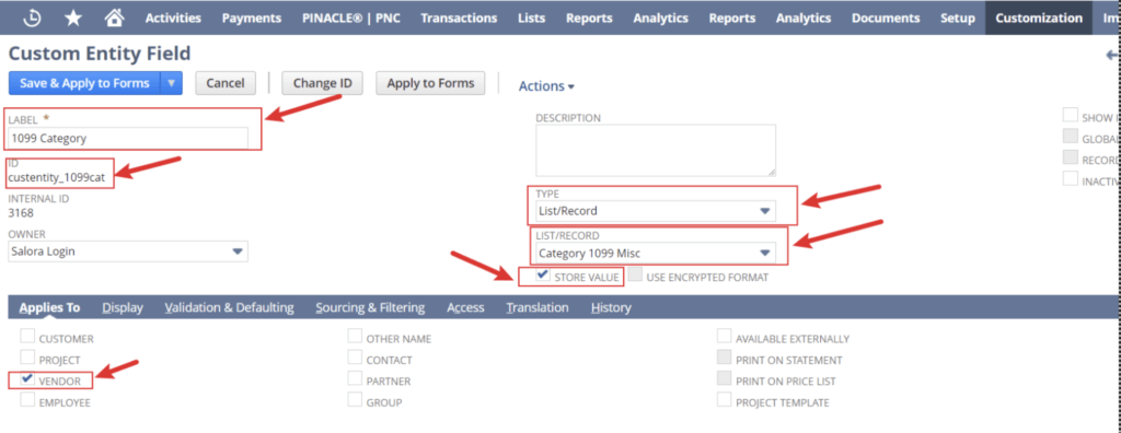 CREATE CUSTOM ENTITY FIELD “1099 CATEGORY’